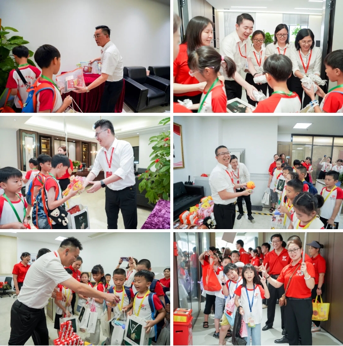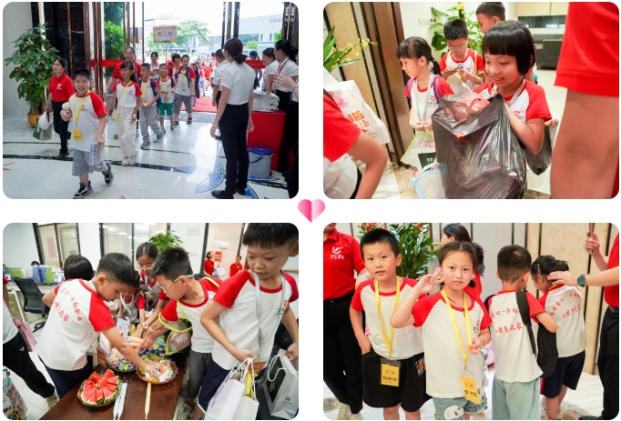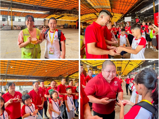 一缕清凉,一份关爱。在走进西樵生产基地的过程中,小候鸟们走到车间一线员工身边,将亲手制作的清凉甜品递到他们的手上,致敬与感谢他们的辛勤付出。此刻,车间内充满了温馨与和谐,每个人脸上所绽放的笑容,便是双向奔赴的爱与感恩的真实写照。