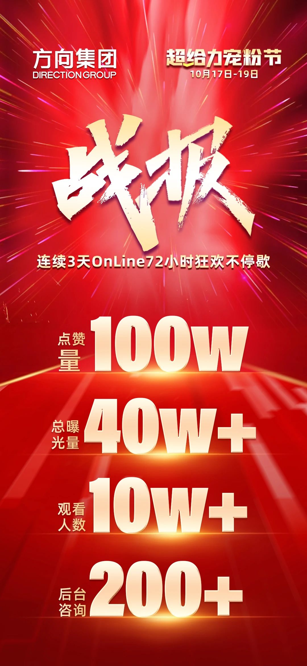 本次直播为期3日,直击集团15周年盛典《定向》现场盛况;沉浸式探索全新展厅的质感表现力;领略秋季新品魅力,收获了点赞量100W,总曝光度40W+,观看人数10w+,后台咨询客户200+!